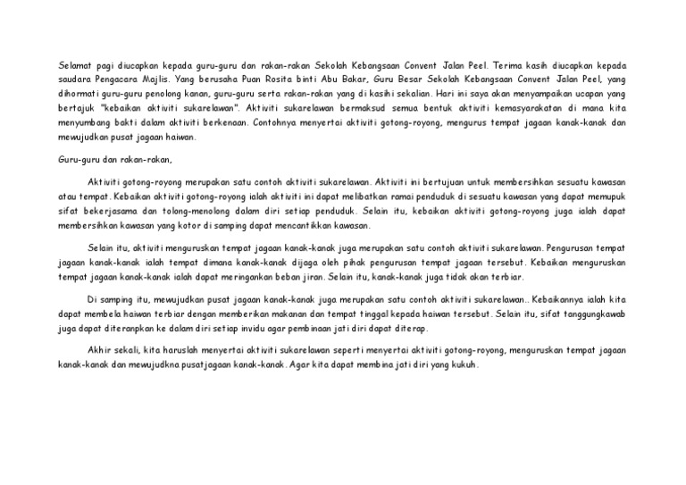Karangan Ucapan Kebaikan Menyertai Aktiviti Sukarelawan Pdf